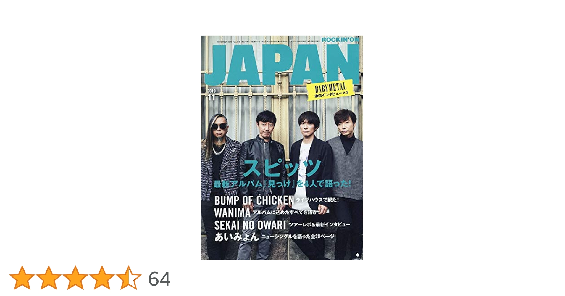 今号の表紙には3年半ぶりにBABYMETAL(ベビーメタル)が登場!
