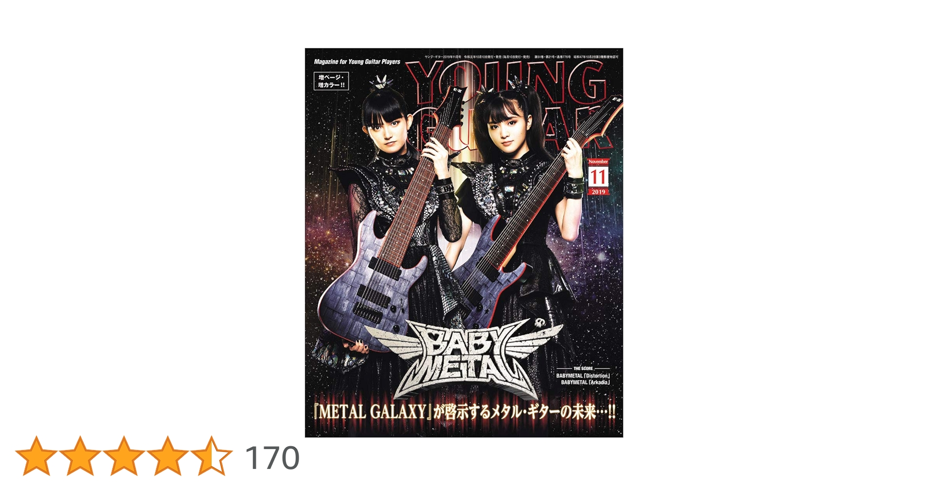 「ヤング・ギター11月号の表紙はBABYMETAL。全世界待望の3rdフル・アルバム『METAL GALAXY』が遂に完成!! “メタル・ギターの未来”を予期させる最新BABYMETALサウンドを、90ページ超えの大特集で徹底検証!!」